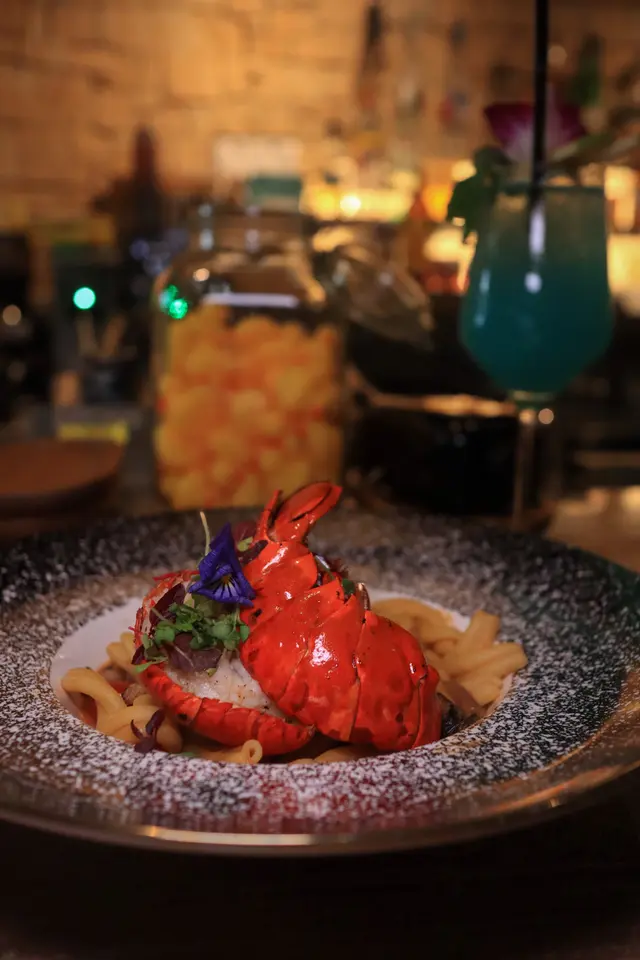 餐廳分別有室外和室內座位,坐室外可以飽覽維港景色,室內亦可感受店內很chill的氣氛,望著Bartender無停手的調制特色cocktail😚😚·1️⃣ Thai Style Salmon Tartare ($128)新鮮三文魚切粒拌勻泰國風味醬汁,配上脆卜卜的米餅,口感層次豐富😚·2️⃣ KABOOM Sharing Platter ($248)拼盤份量很多,內有五款小食,足夠2-3人分享,每款都炸得很香口,蘸上泰式甜酸醬更美味·3️⃣ Crispy Fried Fresh Red Grouper with Tom Kha Kai ($238)新鮮石斑魚柳配上泰式椰子雞湯,魚肉燒得很嫩滑,啖啖肉,愛吃魚的一定要試💕·4️⃣ Thai Lobster Sauce Strozzapreti Pasta with Lobster Tail ($268)泰式龍蝦汁鹹度剛剛好,短捲麵口感煙煙韌韌又掛汁,每一啖都充滿香濃的龍蝦汁,龍蝦肉都爽口彈牙好鮮甜🦞·5️⃣ Every Day Feels Like A Monday! ($108)味道容易入口,比較重柚子味,酸酸甜甜蓋過左酒的苦味💙·6️⃣ Damn Pissed Off! ($108)每一枱都必點‼️😍賣相100分,泡泡浴缸造型的cocktail,旁邊還有鴨仔裝飾,超級可愛🐥…Read More