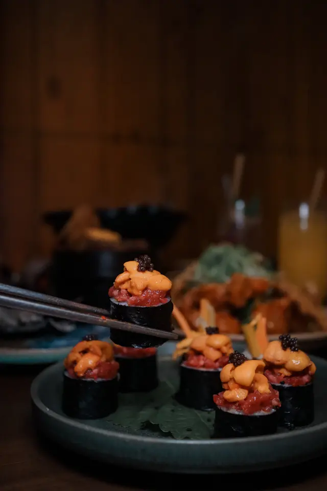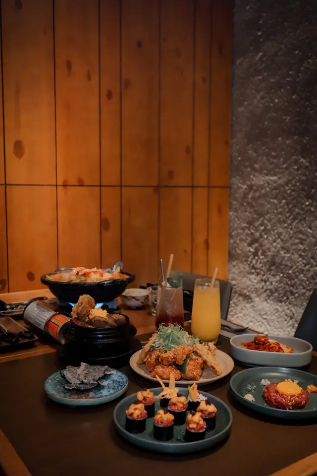 位於銅鑼灣的韓式居酒屋,木系裝潢配以灰黑色設計,隱身於Fashion Walk外面的一條小路內,分別有戶外和室內座位,下雨夜就選擇了坐室內·menu的食物款式也不少,由前菜小食到鍋物炸雞等一應俱全,一定會有想吃的😆·1️⃣辣漬前菜 ($38)泡菜辣辣的好開胃,還有魷魚絲都不錯·2️⃣韓式生牛肉 ($215)職員會幫忙把伴碟的配料拌勻,口感滑溜,搭配脆卜卜的紫菜脆片食口感更有層次🤤·3️⃣海鮮部隊鍋 ($408)先喝一口熱騰騰的泡菜夾雜海鮮味的湯底😆海鮮配料也蠻多,有蜆、青口、蝦、八爪魚,另外還有豬腩肉、午餐肉、年糕等,大滿足🧡·4️⃣海膽紫菜包飯 ($380)必食推介‼️一次過滿足兩個願望,有海膽亦有生牛肉的飯卷,是日韓fusion菜式🤣海膽鮮甜,搭配生牛肉他他和黑魚子,完全零違和感🤩🫶🏻·5️⃣八爪魚牛肋骨 ($245/regular)牛肋骨炆得好腍好入味,份量又多,我們點了regular份量也覺得很多🤣·6️⃣半半炸雞 ($178)點了一半甜辣味一半芝士味,炸雞皮脆肉嫩,啖啖肉好juicy,炸粉不算厚👍🏻每件炸雞都好大件,份量又巨,建議3-4人share食會更好🙈🙈·7️⃣Lychee soda ($48)8️⃣Cold pressed orange juice ($68)另外還點了兩杯飲品,大大杯,冰涼又解渴😚…Read More