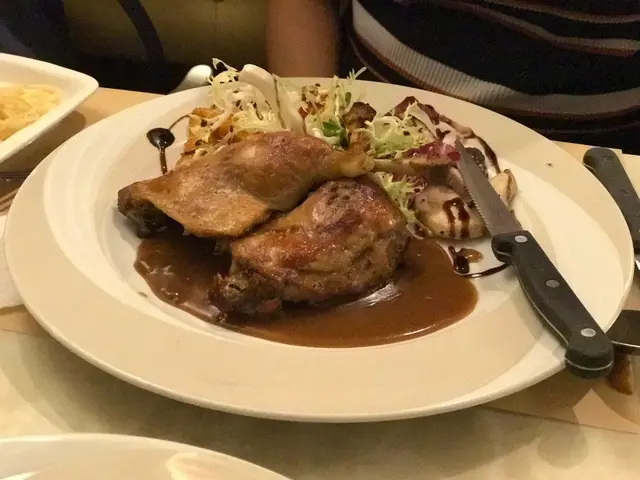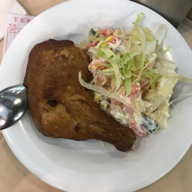 屋企樓下的商場有不少茶餐廳, 我通常固定吃某一兩間, 今天經過家家樂, 見裡面有位置便進去坐了, 當時未算很餓, 預計自己也吃不下一個飯, 便只叫了一個雞腿沙律, 賣相比起平時算是不錯了, 雞腿熱辣辣的, 皮脆, 可是肉有點老了. 沙律醬有點過多, 但整體上也不差.家人叫了 時菜班腩飯. 平常我們都愛吃這個, 不會很油, 又夠味道.埋單$88, 普通茶記來說, 質素算正常了.…Read More