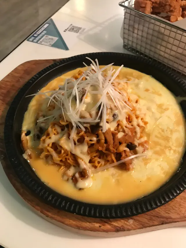 又來到九龍灣覓食了, 晚上7點, 到處餐廳都超級多人, 幸好找到一間人流較少的餐廳,它就在淘大商場三期, 其實很容易就找到啦~~ 餐廳門面寬闊, 佈置也很特別. 看似是台式餐廳, 但其實混合了韓式食品, 很新奇!鐵板芝士燒韓國拉面(豚肉), 芝士味超級濃郁芝士薯角, 好香口, 可以拉到超長的芝士絲~台式魯肉泡菜蛋餅, 我第一次吃這種蛋餅, 口感頗為特別, 但也不錯!士林炸雞配薯片, 薯片有點蜜糖在上面, 甜甜的, 炸雞的肉也很滑嫩~朱古力香蕉, 有點太甜了…Read More