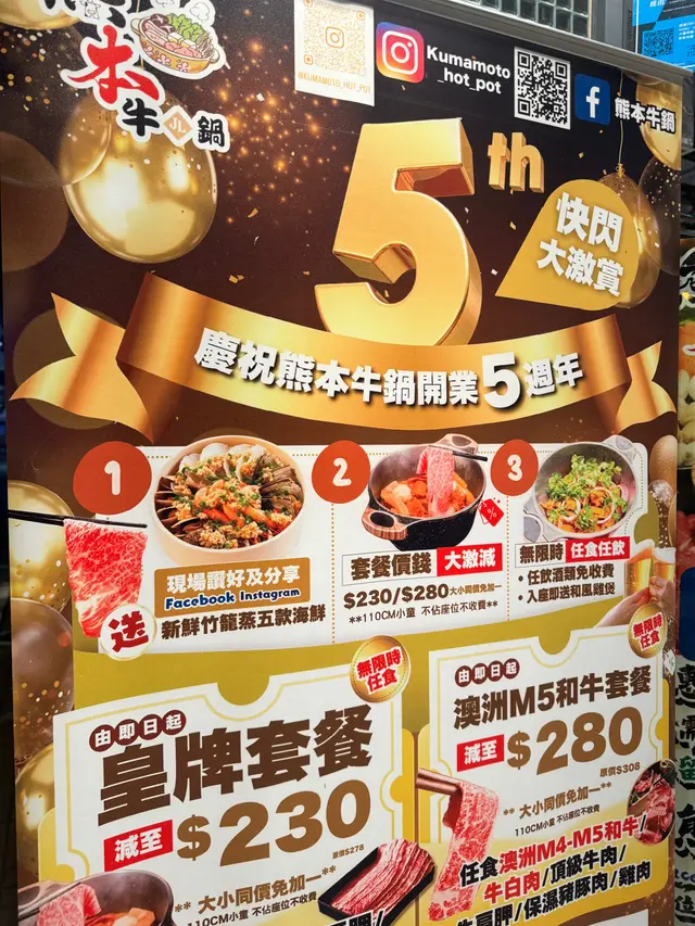 點了澳洲M5和牛套餐,牛的肥膏很多但並沒有牛脂香味,而且肉質很硬,第一次來的牛是鮮紅色,其後來的都是暗紅色,而且有漏單情況;自取配料區的魚片和魚滑就放在外露室溫位置,不敢進食;雪糕櫃亦有不少污漬;打卡送的蒸海鮮入座後1.5小時才送到看到旁邊的遲我們進來半小時的客人都已有蒸海鮮,詢問職員,職員回覆還在蒸,15分鐘後我們的海鮮終於到,但發現未如宣傳牌上所寫的五款海鮮,便再次詢問職員男職員回覆:因為蝦沒有了我回應:但你們宣傳牌寫着是五款的男職員回覆:因為是免費的,所以沒有就沒有我便跟職員說:旁邊的客人遲我們半小時到,為何他們有蝦,但我們沒有?男職員回答:因為他們人多男職員回答完就馬上走開,所以該位男職員意思是因為他們人多,讓他們多賺錢,所以最後的蝦都給了他們?我叫了另外一位職員過來,表示不滿其答覆,而且不合理職員聽完走開了,並沒有任何回覆隔了10分鐘,男職員放下了兩隻蝦就離開,並沒有任何交待咁其實那位男職員一開始是打算耍走我們,並非真的沒有蝦?雖然每人只是$280,但食到一肚氣,十分不推薦!…查看更多