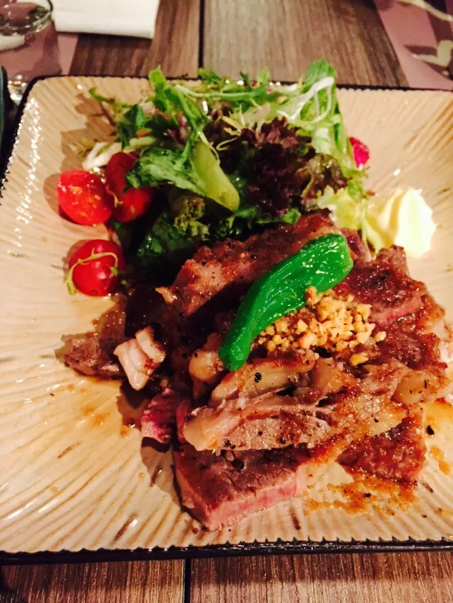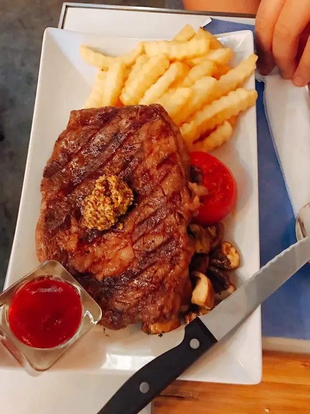 是日精選牛扒 ★★★★☆今次嘅主角係香氣四溢嘅牛扒,火候掌握得宜,肉質嫩滑。配上新鮮迷迭香點綴,香氣撲鼻。牛扒外層燒得香脆,內裡仲保持粉紅色澤,完美演繹medium rare嘅口感。最正係配埋嘅薯條,金黃酥脆,外脆內軟,絕對係牛扒嘅最佳拍檔。餐廳環境 ★★★★☆位於銅鑼灣嘅餐廳設計簡約時尚,米色座椅配搭深色木桌,營造溫暖舒適嘅用餐氣氛。開放式天花設計增添空間感,座位間距適中,私密度都幾好。最欣賞佢哋嘅餐具選擇,黑色餐盤突顯食物顏色,擺盤都幾講究。前菜推介 ★★★★☆炸魷魚圈外脆內軟,配上新鮮檸檬角,酸香開胃。炸粉層夠薄,魷魚夠新鮮,完全冇漏油嘅問題。特別一提佢哋嘅蘑菇小食,簡單調味都好開胃。主菜精選 ★★★★★慢煮牛柳配大蝦係我嘅心水推介,牛肉質地軟嫩,醬汁香濃惹味。配上新鮮蘆筍同大蝦,搭配得好完美。最後仲送上生日蛋糕,係開心果味,香濃幼滑,甜度適中,係一個完美嘅句號。酒品選擇豐富,紅酒白酒都有一定水準,價錢都幾合理。整體嚟講,食物水準高,絕對值得推介。…Read More