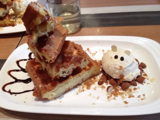 食物:難得一場來到,知甜牙牙出名waffle, 看了餐牌,選擇很多,很吸引,於是點了豆香waffle, 先叫自己冷靜一下對之前安排入座的不滿,但一咬下已經叫人失望,waffle很硬,像放了很久,而且凍的,完全沒有外脆內軟的口感,而那個很可愛的小公仔,不是雪糕,只是cream, 而且味道超淡,完全沒豆香!超級失望!Tea set反而還有多一杯即日特飲,反而更抵另外服務超級差!