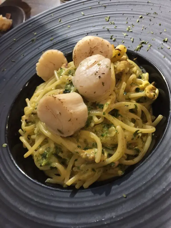 。食物當然有好多唔同既選擇啦,好有新鮮感。細路唔係食得好多野,所以就叫左個二人套餐$438,就有好多野食果個呢,我一定要講下呢一個輕煎北海道刺身帶子配海鮮龍蝦汁意粉,聽個名都知一定好好食啦,食入口好鮮好甜,帶子有大大粒,而且好希咬口,好好食,加埋佢地呢一個龍蝦汁,簡直就係絕配!!!!!!!!!