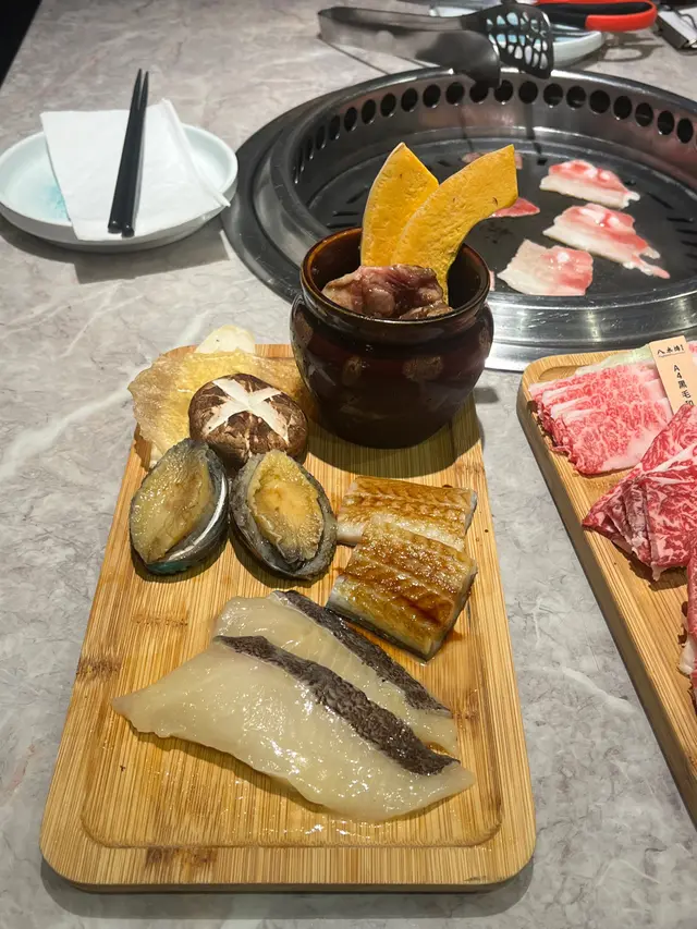 原來TOP 3樓有間好企理嘅燒肉放題!上到去揀咗個做緊特價嘅雨餐套餐,本身$1108/位,依家有半價120分鐘任食🥹抵好多~一埋到位,店員就送咗一板嚟自日本嘅A5和牛西冷比我哋🐮肉質超軟腍,的確同其他牛嘅質感好唔同🙂‍↕️另外呢個餐仲包咗油花四品和牛燒肉盛,每一款牛都有標籤,方便知道自己食緊咩類型嘅牛👍🏻朋友就話我知,和尚頭同埋三角腩都係油花比較足嘅肉嚟,入口即溶🐮試咗之外果然係咁!入口即溶,有黑毛和牛應有嘅質感!令朋友最驚喜嘅就係甜甜地嘅韓風瓷壺醬油牛肋肉,肉質好冧,好入味!香蔥薄切和牛同埋好彈牙嘅鮑魚都唔錯~ 個人超大推味淋魚干!!燒好後甜甜地好好食!送酒一流!同埋都幾鍾意食比目魚西京燒,甜甜地,食得出魚好新鮮,可以再encore !呢個Set仲有其他款嘅肉同海鮮,包括M5澳洲和牛牛肩背、M5澳洲和牛腹胸等,不過明顯地啲肉就比較一般喇🙈🙈除咗肉仲可以嗌其他熟食,例如天婦羅或者章魚小丸子等等仲有好多特色甜品同飲品~…Read More