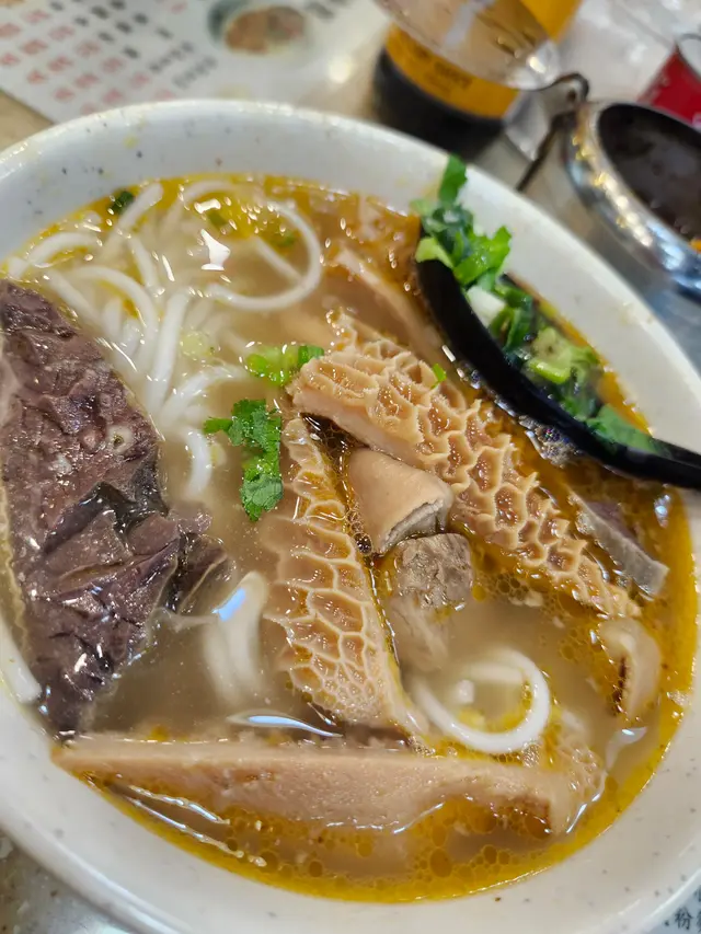 午後三點,走進這家開了廿年以上的牛雜粉麵店。點一碗牛雜米線配凍檸茶,仍是記憶中的四十七元。牛雜處理得乾淨利落:腸壁颳得透薄,帶著適度脂香;牛肺鬆化如海綿,吸飽陳年滷汁;牛肚軟中帶韌,與米線同吃正是絕配。湯頭清澈見底卻韻味悠長。最驚喜是那瓶自家製辣椒油,—舀半匙拌入湯中,整碗頓時鮮活起來。辣勁溫潤不嗆喉,混著炒香蝦米的鹹鮮。凍檸茶茶底醇厚不澀,檸檬片摏得恰到好處,是街坊店難得的講究。在這萬物飛漲的年頭,能用四十七元換取如此踏實的滿足,或許就是街坊小店嘅實在。…Read More