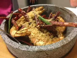 果日男朋友成日都未食野一坐低即刻叫個蒜蓉包同咖喱牛腩比男朋友食住先個牛腩煮到好淋 加埋大量onion 聞落好香 送飯真係一流鬼佬男朋友就唔係好岩食.. 仲好 我可以食多D跟住我地再叫左爽拿蝦, 薯皮焗帶子, 葡式豬肋骨 個蝦炸到好香口 可以連埋個殼食 (必定再翻食)