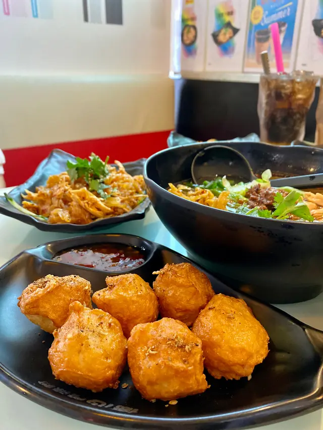 呢間來自台灣嘅沖繩飯團 之前冇堂食嘅時候間中都會買黎食 全部飯團都係即叫即整 拎上手仲熱辣辣每款飯團都有厚厚嘅玉子同午餐肉 再配上唔同嘅醬料同配菜 非常足料今次揀咗一個平時都會嗌嘅明太子沙律醬 試過幾款最鍾意都係呢個🤤另一款叫咗新出嘅 海苔醬卡拉雞 海苔醬係甜甜哋 炸雞超大嚿好香脆 加埋玉子同午餐肉 成個飯團係超大個 一啖咬唔晒全部配料🤣小食就揀咗蜜糖芥末薯條 同 咖哩可樂餅 薯條份量好多 配埋蜜糖芥末醬真係無得輸🤤 不過略嫌有部分炸得硬左少少🤏🏻 可樂餅比較有驚喜 入面原來係咖喱味嘅薯蓉 外層炸得好香脆 裏面軟綿綿🤤飲品就揀咗黑芝麻豆漿同蜂蜜檸檬兩款飲品味道都唔錯 甜度啱啱好 豆漿芝麻味好香 飲到最尾都仲有勁多芝麻🤣炙燒明太子飯團 $35海苔醬卡拉雞飯團 $55(+$20 任選$18或以下飲品&小食)…Read More