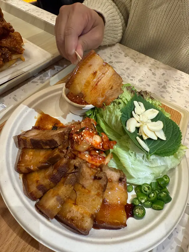 燒醬油黑毛豬白切肉配大醬生菜