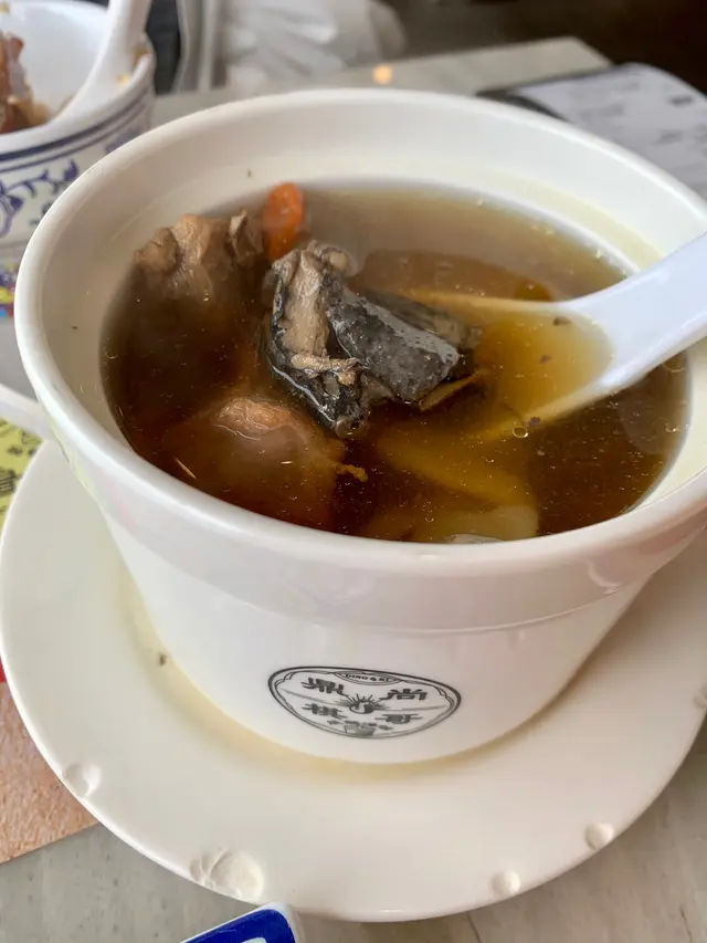 棋哥燒鵝一向出名好食,今次加埋鼎爺當然要一試啦!一大早由龍虎山行上山頂,非常肚餓,於是揀個靚境坐下品嘗燒鵝。我們二人叫了下脏燒鵝一份、豬油渣撈飯,天麻川芎燉雞湯及三個點心。燒鵝非常脆皮甘香好食,豬油渣撈飯加上秘製醬汁不肥膩,個燉湯也足料。唯獨是鼎爺手工芝麻卷比較硬身一些,雖然有黑芝麻香味,但三條收$68,實在有點貴。整體食物質素不錯,不過價錢也不便宜,幸好有靚境補償。…Read More