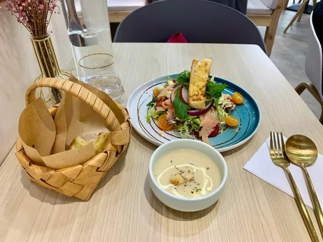 三文魚牛油果沙律加餐湯及蒜蓉包
