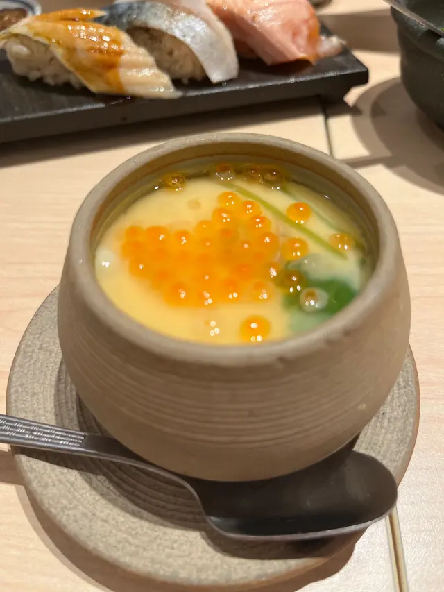 朋友某一日話想試呢間壽司郎開嘅居酒屋 見收工時間尚早 姑且就去Walk in試吓 超級好彩地 兩個人等位唔算好耐大概15-20就有得入場(閒日) 我哋被安排榻榻米座位 以兩個人來講都幾寬敞舒服 一坐低即刻急不及待嗌嘢食😋魚子醬壽司($38)以魚子醬鋪滿壽司飯 用匙羹不黎食 賣相精緻但入口略嫌有點鹹大膽滿足茶碗蒸($28)淡淡香滑蛋味之外 竟然食到有大大粒帶子實在驚喜鮟鱇魚肝拌柚子醋啫喱($38)魚肝嘅鮮同鹹配合柚子醋嘅酸同埋蔥花嘅香口 三者夾埋味道非常夾 口感亦都好得意 係我最鍾意嘅一款乾杯三文魚($38)三文魚肉厚厚 好食生海膽軍艦($58 /1)好有海水味 好新鮮 唔算太甜總括而言餐廳食物質素中上環境光猛清潔店員10分有禮 有機會會再黎🫶🏻…Read More