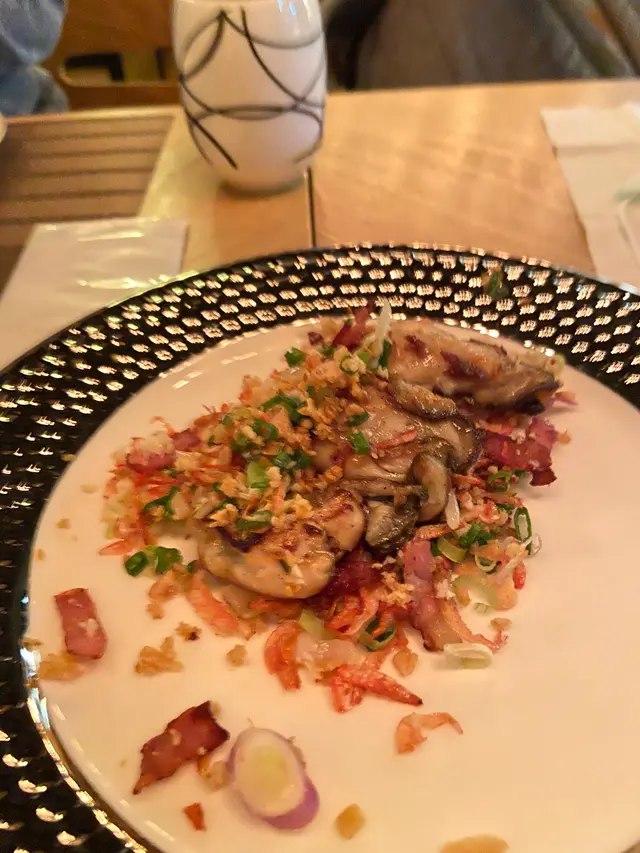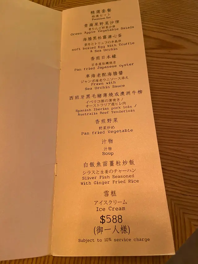 這大廈的食店我吃過幾家,質素都不錯,這晚重訪,便試試這家鐵板燒餐廳。餐廳是日式的裝潢,配上柔和的燈光,給人温暖的彷如置身家中的感覺。食物方面,餐廳設計了不同價格的套餐,似乎沒有單點,有選擇困難症的人如我,如此的安排更合意。鐵板燒就該如此!先來的是青蘋果野菜沙律,新鮮的沙律菜,配上爽口微酸的青蘋果、少許粟米脆片,再混合不多不少的醬汁,簡單又開胃。接下來是海膽黑松露溏心蛋,賣相非常精緻,嫩滑的蛋白和流心蛋液,伴上香軟的海膽,還有畫龍點睛的黑松露醬,實在太美味。香煎日本蠔看上去已經夠香口惹味,有大量的蝦米、煙肉和乾葱蒜,香氣四溢,吃下去簡直驚喜。蠔肉肥美,很creamy,一點腥味都沒有,加上極好的調味,我吃得欲罷不能。驚喜一浪接一浪!車海老配海膽醬上桌時把我嚇呆。沒有想到這蝦會那麼大隻,而且爽口彈牙,鮮味無比!再來另一道主菜-澳洲牛柳伴香煎野菜。牛柳鬆軟可口,南瓜和香菇既淋又甜,簡單好吃。汁物是白酒煮蜆。蜆的size不算很大,但湯鮮甜得很,不錯。然後是白飯魚苗薑粒炒飯。這個倒有點失望,感覺沒有鑊氣和油潤感,味道亦淡。甜品是簡單的抹茶雪糕,茶味濃點滑點就好。最後一提,這裏的上菜速度頗慢,適合和朋友來吃上幾個小時。…Read More