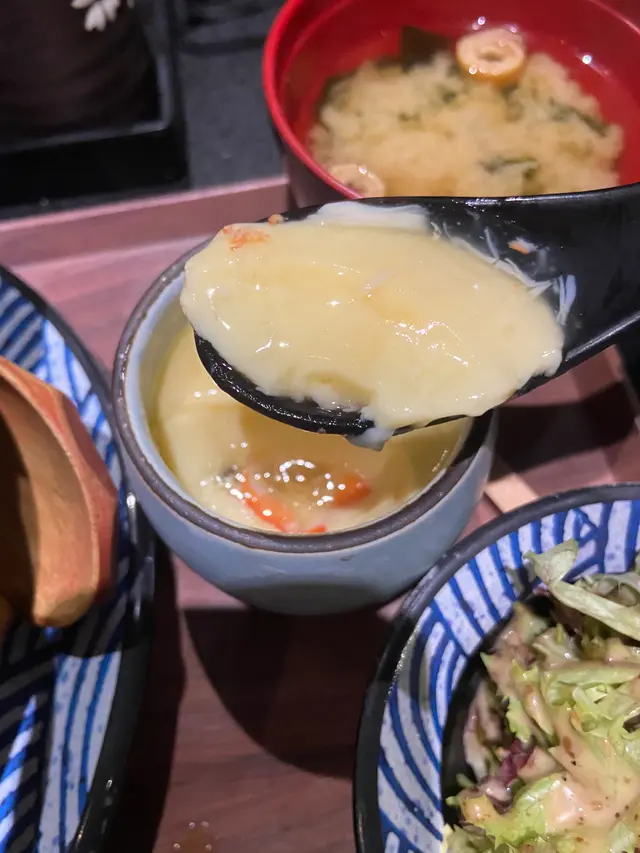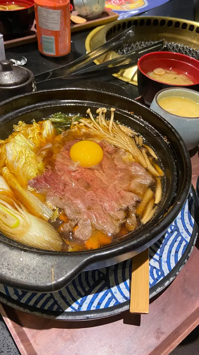 之前嚟過呢度食燒肉,感覺唔錯,因為晚市禁堂食既關係,今次就嚟試試呢度既午市定食!呢度既座位多數係卡位,所以好闊落,坐得非常舒適!午市定食選擇都幾多,而且價錢合理。我揀左黑毛和牛壽喜燒配刺身三點,而男朋友就㨂左和牛粒石鍋飯。每個定食都配上茶碗蒸、沙律同麵鼓湯。茶碗蒸非常高水準,蛋蒸得好滑嫩,裏面有冬菇同蟹柳,我超鍾意食!沙律簡簡單單,作為前菜夠哂開胃。壽喜燒嚟到估唔到份量都幾大,有大大塊既和牛、娃娃菜、冬菇、金菇,仲有日本生雞蛋,撈埋甜甜地既壽喜燒汁,送飯一流!和牛質素亦唔馬虎,大塊之餘好嫩滑,未至於入口即融,但呢個價錢絕對收貨了!壽喜燒定食既刺身份量都唔欺場,三款之中我最愛甜蝦,新鮮又帶鮮味既味道。至於男朋友既和牛粒石鍋飯,佢有讚冇彈,我試左少少,果然和牛切成厚粒,口感豐富,更加香口,加上微焦既飯,有啲似一鍋高級既煲仔飯,唔錯!最後一提,定食仲包埋飲品,百幾蚊有咁多野食,CP值相當高,希望餐廳keep住水準,係疫情之下都一定做得住!…Read More