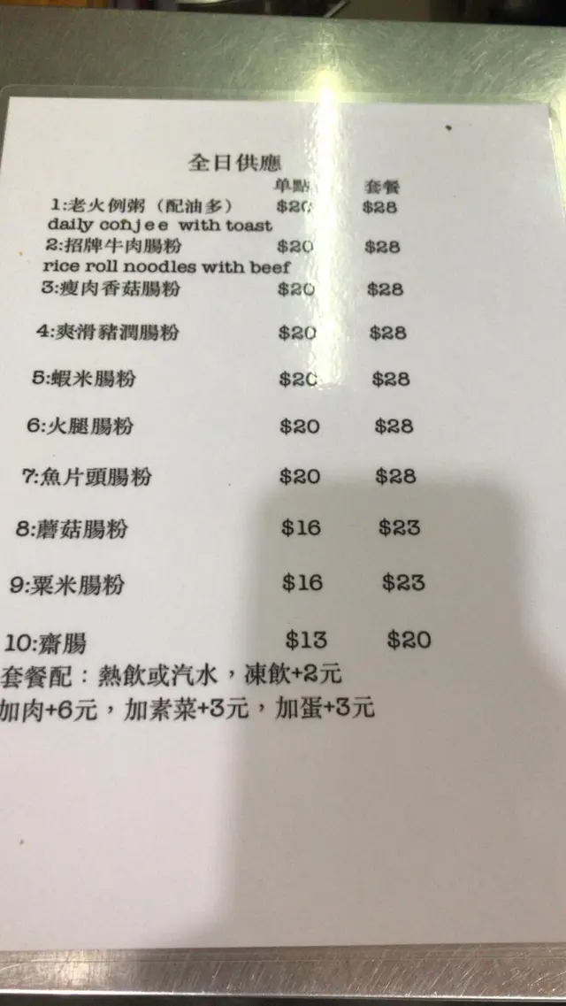 係大角咀搵食,無意中發現呢間極細小嘅小店,係錢不貴,味道又相當唔錯!早餐組合正合我意,可以中西合璧,我點了豬潤腸加熱奶茶,奶茶中規中舉,已比好多茶餐廳都好,佢嘅腸粉有別傳統香港腸粉,唔係粉皮包住D餡料,佢似大陸D腸粉。佢粉皮同豬潤都好嫩滑,大大碟腸粉加熱飲才28蚊,正!下次經過必定再幫襯!…Read More