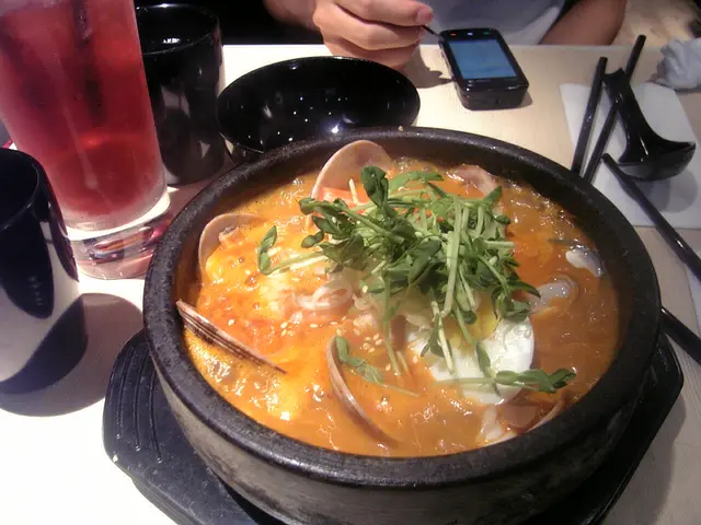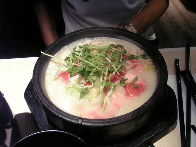 海鮮濃湯烏冬 - 滾住上,店員好貼心咁講等無咁熱先好食:),心急既我緊係唔等咁住啦,先飲淡湯,濃濃的甜甜的海洋湯,正!再看,海鮮好足料,有三隻大蜆,一隻青口,一隻大扇貝肉,幾隻蝦,蟹柳,半隻蛋!烏冬都彈牙:)但有小小癡底!我覺得好好味!男友叫左