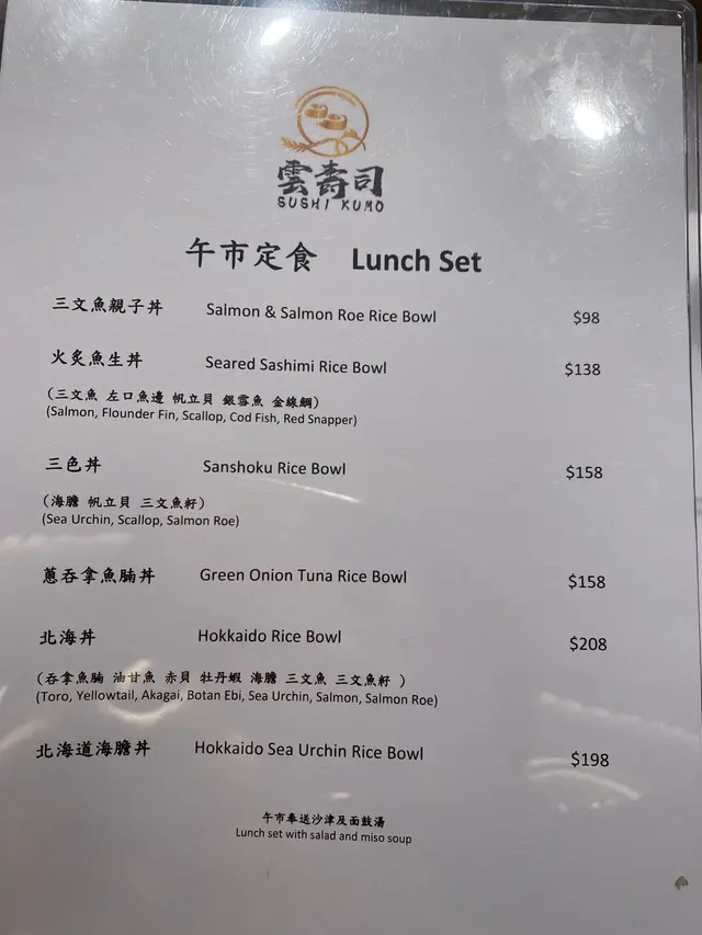 食過一次銅鑼灣分店嘅lunch set,覺得好好食。依家開到嚟九龍,就決定再嚟食lunch。餐廳全部都係bar枱,可以欣賞師傅嘅手勢。叫咗個壽司拼盤($198) 同埋北海丼 ($208)。🍣壽司拼盤一共有10件壽司。 🍣 北海丼有齊曬我最鍾意嘅刺身,包括吞拿魚腩同埋海膽。😍雖然唔係咩名貴餐廳,但啲刺身真係又新鮮又肥美,食得出係高質貨😋。見佢都有提供omakase,最平個餐只係$380,下次都會想試試。😚…Read More