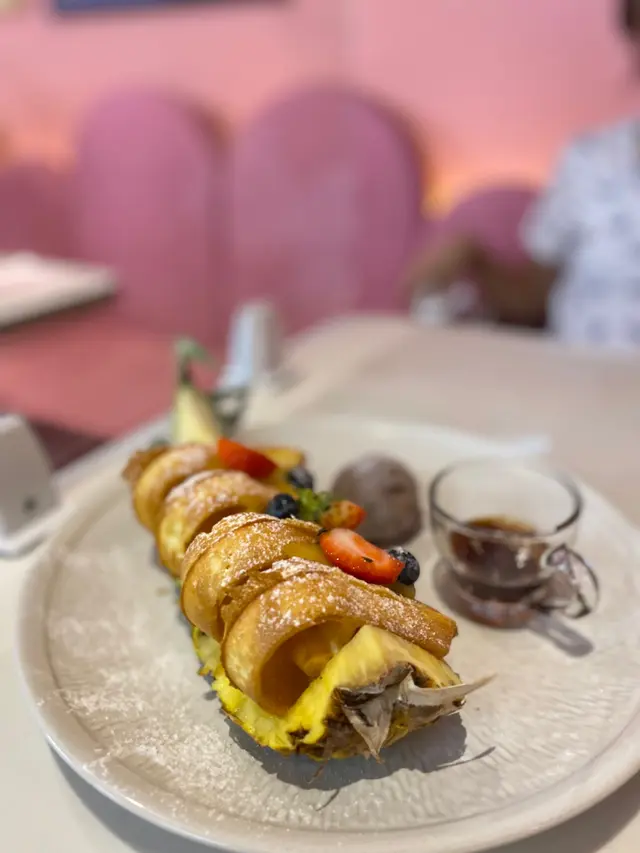 見餐廳少女粉紅嘅裝修,本身以為只係打卡cafe,點知嘢食都唔錯!💟 蟹盛樂蟹蓋裏面裝著淡淡蟹肉,上面嘅芝士絲令佢更加邪惡😈 不過食食下覺得好heavy 🙈💟慢煮西班牙橡果黑毛豬柳珍珠麵比起蟹盛樂,更喜歡這個🙂珍珠麵第一次試,口感好chewy,幾特別~💟青花瓷奶蓋💟蜜桃爆珠氣泡茶最後order左個菠蘿waffle 😆大滿足😋…Read More