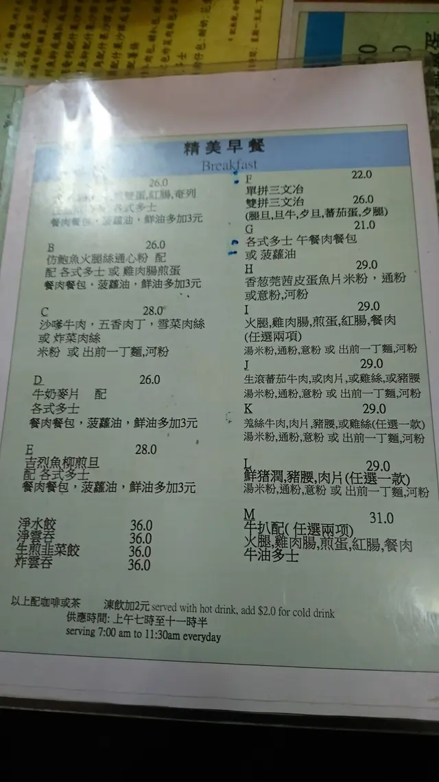 凍冰冰星期六仲要返工簡直係人間悲劇😢為了彌補心靈空虛,今日一定要食個豐富早餐,所以揀咗呢間位於上環信德的西式餐廳。 平時返工經過見入面坐滿人,心稔應該唔衰得去邊,加上外面menu影得塊魚柳好吸引...好啦,就入去試下。首先,餐廳位於扶手電梯旁,上層途人可清楚看見客人進食,沒有私隱環境確實麻麻。點餐亦要自己到收銀處落單和付款,攞咗個飛碟就可以搵位坐,當飛碟響就會有姐姐攞餐送到座位上。我鐘意食魚,今次點咗個炸魚柳,滑蛋田園沙律 加凍檸茶。 終於等到姐姐送餐,一望好失望,所有份量都超級“迷你”, 但亦合符$38嘅標準。凍檸茶 - 味道同濃度不太特別,等同普通茶餐廳水準。田園沙律 - 無醬汁,無味道,菜質硬應該雪太耐,感覺似食野草。炸魚柳 - 香脆,味道略淡,沙律醬汁太少,最後攞咗包茄汁代替多士 - 非常難食,咬咗兩啖就放棄了😝 塊多士唔夠熱又唔脆,蜜糖味道奇怪,再加上我唔鐘意食厚包,所以對塊多士非常失望。飯後感: 環境同食物都屬中下,價格適中但個人認為茶餐廳質素會較好。 最重要一點,我個座位係對住冷氣,d風不停迎面吹,食完想坐陣hea吓都唔得,簡直係想趕客😅 不過可能位於信德當眼處,好多旅客都貪方便快食,所以呢間餐廳仍然長期爆滿。最後評語: 只推介炸魚柳…Read More