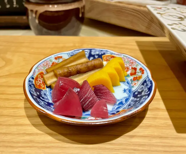 臨近聖誕,冇得堂食晚餐,午餐都要食好西。立師傅分身有術,在尖沙嘴開了新店。一齊支持吓。新店就在中間道停車塲舊址,現在已經係好新潮嘅商廈。搭地鐵好易搵到呢個 H Zentre。上一層扶手電梯就見到。環境唔錯,吧檯為主。都係主打Omakase。我點了 14 貫壽司,$458 價位唔貴,值得期待。日光日白,兄弟居然發起「梅酒tasting」😱。4杯梅酒逐一品嚐。跟住要繼續work from home,我都係淺嚐。好開心師傅不斷供應我非常喜歡嘅漬物。沙律同蒸蛋都好味。蒸蛋個盅好靚!開始入正題。第一件「伊左目」。師傅話即係本地稱為「雞魚」。已經有醬油、唔使點任何嘢食👍深海池魚 - 任何季節都食到、Omakase 必然有佢 👍蜜柑鯛 - 用柑皮飼養的鯛魚,產量不高。據說特色是肉有柑橘味。我唔係好食得出。Anyway 長知識啦。赤貝 - 非常爽口鮮味👍牡丹蝦蝦膏 - 亦係Omakase 常見的角色。蝦肉、蝦膏味道都超級濃郁👍北寄貝 - 賣相好靚,但我食果件一般。鰤魚 - 加了「柚子胡椒」,幾清新得嚟有啲特色。幻星鰹- 開始進入重口味系列。呢隻幻星鰹本身油份非常高,稍微火灼一下非常香口,同時魚味超濃。跟住係「梭子魚」- 朋友好欣賞,不斷search 條魚點樣嘅。師傅話本地叫「竹籤魚」。唔記得係乜😅鯖魚 - 加入了柚子蘿蔔,酸酸地。本身小小類似箱押壽司咁嘅做法,再夾紫菜食,鯖魚嘅濃郁魚味發揮得幾好而唔會腥。帆立貝 - 都係夾紫菜食,另一位朋友話「好似食咗個大海咁澎拜」😂。咁我本身唔係帆立貝嘅粉絲,唔係好感受到個大海,都係鮮味嘅~海膽軍艦 - 高水準拖羅 - 繼續高水準。拖羅筋!係,係拖羅嘅筋,第一次食。燒香咗,口感係出乎意料,唔韌,係入口即溶但唔油膩。好嘢!嚟到呢度已經15件,唔知係咪加咗料😂。再有一個驚喜係個麵。細細碗,湯好清好熱,好暖胃。上面加咗小小櫻花蝦天婦羅,又有小小脆脆口感之餘唔會好膩。最後雪芭總結。所以話 lunch 好多時性價比更高。以呢個價錢有咁嘅水準同服務,值得支持~…Read More