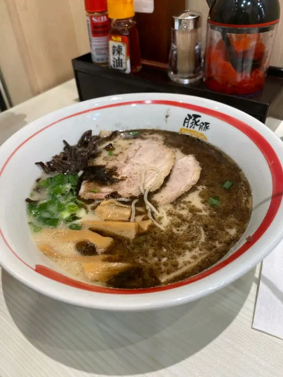 叫左個2人套餐,主食方面就叫左個黑豚拉麵同招牌牛油拉麵,拉麵唔會太軟身,湯有濃濃既黑蒜味,叉燒偏瘦但對我黎講就岩岩好。小食方面可以任選3款,我地分別叫左炸薯餅,炒魷魚,燒雞翼搭雞軟骨各2串。比較有驚喜既係炸薯餅,南瓜蓉帶有甘甜,唔需要額外加沙律醬食。串燒方面,雞軟骨燒得唔夠耐同埋冇乜味道,雞翼就岩岩好,有調到味。…Read More