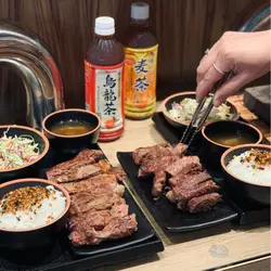 走入深水埗食燒肉,無油煙的牛石燒,作午間定食,份量適合。先從門口販賣機點餐,共6款牛牛,1款豬扒,描述略有介紹肉的口感,初嚐的也不擔心不懂點餐。點了兩份扒餐後,坐下靜候。上餐效率很快,轉眼間牛肉到了。店員很友善的簡述如何石燒牛。石燒板熱得很快,時間的控制,非常重要。幸好每個座位旁有抽煙系統,不會出現煙熏的仙氣。先把蔥、蒜烤熱,喚醒石燒板。再撒上岩鹽與胡椒,放上主角牛扒。輕烤幾分鐘後,翻轉烤另一邊。隨個人口味再烤至理想的熟度。當然理想是五成熟,牛扒中間25%呈粉紅色。七成熟,中間呈淺歇色,只有少量是粉紅色。黑安格斯肉眼(300g) Black Angus Ribeye 🥩 店員教授獨門秘技,切開塊扒慢慢燒。快刀把扒切成厚條,輕燒幾分鐘,再上碟。先別急著切食用,讓扒先待著一分鐘,再切。入口肉質柔嫩,口感軟稔。最能鎖住肉汁,再沾上燒汁、芥末醬提味。安格斯肩胛翼板(300g) Angus Chuck Flap 🥩牛肉的條紋最完整,油花偏多。同樣參照店員的燒烤方法,這塊切開後樣子特別漂亮。肉質嫩滑,油脂分佈平均。兩款定食扒餐均配飯及沙律,再配一碗熱牛肉湯,整體滿足也飽足。…Read More