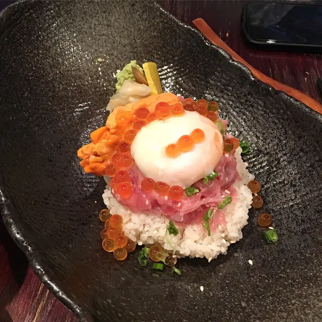)海膽溫泉蛋飯 呢個飯都係我預期既咁細份,係我地眼中佢就只係簡單一個溫泉蛋飯,唔算有驚喜,海膽都唔係多,但都撈埋都係好食既。