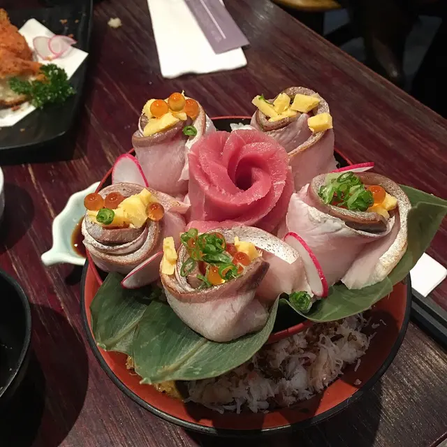薔薇二段丼係我成餐飯最期待既,雖然唔算大份,但成束花靚到真係唔捨得食,單係呢個心思已經抵返哂。好彩唔係得個樣,啲玫瑰花(魚生)都好鮮甜。而下面果層飯,最驚喜既可以話係啲蟹膏,完全無過咁足料同咁新鮮(呢刻我仲回味緊