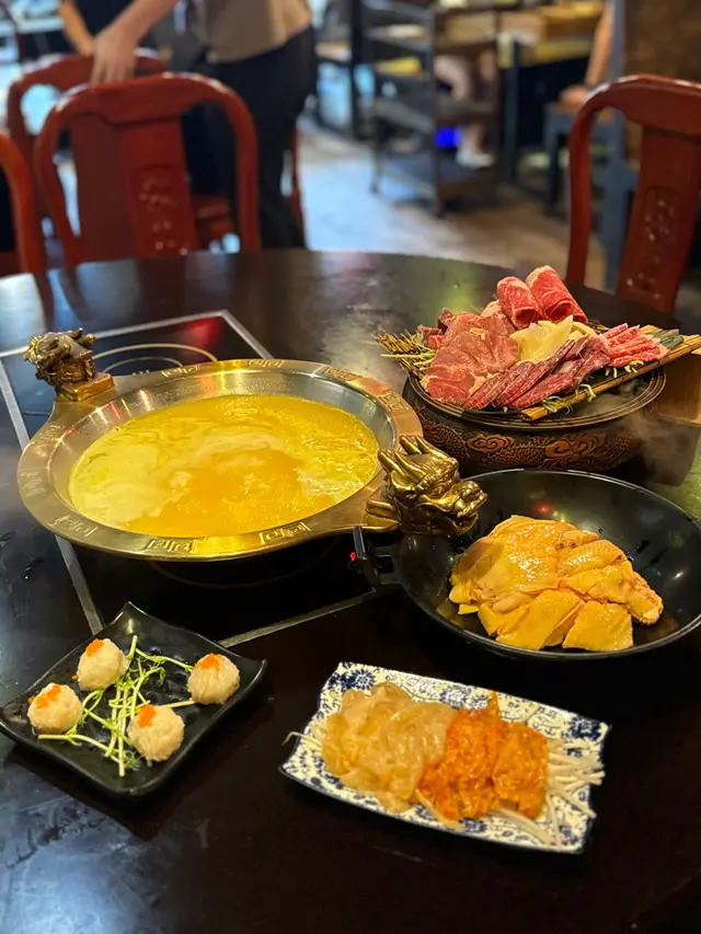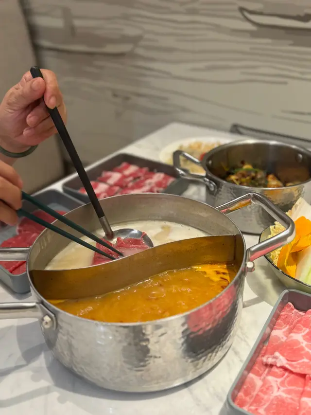 發現呢間「大滾友火鍋」絕對係區內隱藏高手!主打養生湯底同手工火鍋料🔥 今次試咗佢哋招牌花膠雞湯,仲有創意十足嘅「金屋藏嬌」墨魚丸,到底係咪真係咁正?即刻同大家開箱! --- **✨鎮店之寶|花膠雞湯底(半隻)$328** 「未涮料先飲湯」係規矩!一揭蓋就見到金黃湯面浮滿厚身花膠,膠質多到用匙羹舀起可以「掛壁」💛 雞係每日新鮮運到,肉質結實得嚟唔柴,飲落鮮甜到喉嚨尾,仲有淡淡當歸紅棗香,女士們即刻瘋狂追加兩輪湯!*🥩肉食控天堂|牛肉拼盤(細)$428** 擺盤靚到唔捨得淥!美國頂級雪花肥牛雪花紋靚到發光✨ 輕涮5秒蘸少少沙茶醬,入口即溶仲有奶香;牛展、牛肉粒牛黃喉、 頂級安排斯牛小排、同牛舌花!牛舌柔軟,好滿足呀;手切牛頸脊厚切夠嚼勁,牛味濃到似喺口中爆開;最驚喜係牛肉粒,爽脆度味濃。🐮金屋藏嬌和牛墨魚丸 $78** 店長神秘推介:「呢個係我哋隱藏menu!」墨魚丸外層爽彈到可以乒乓球,咬開竟然爆出和牛餡同鹹蛋黃,邪惡度滿分!🐷黑毛豬王者|伊比利亞橡果豬 $228** 脂肪分布靚過和牛!肉片切到透光,涮8秒捲成玫瑰花狀🌹 入口帶獨特榛子香,完全冇豬膻味,點少少檸檬汁就已經夠晒提鮮~🍲解膩必點|雜菜拼盤$118+響鈴拼盤$88** 三色響鈴即叫即炸,紫菜味鹹香、麻辣味後勁刺激,原味配花膠湯係無敵組合! 🍮壓軸表演|火焰焦糖豆腐花** 店員即場燒火槍🔥 焦糖脆片「咔嚓」一聲裂開,下面豆腐花仲係冰凍狀態!冷熱交織+豆香濃郁,食完火鍋嚟一碗超治癒~ 🍻啤酒狂歡|藍妹@2 $116冰凍啤酒配火鍋,即時降溫又解膩,仲抵過飲汽水~ …Read More
