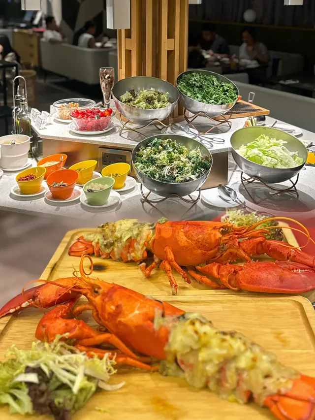同Friend相約食Dinner,一踏入餐廳就被簡約時尚的環境吸引(座位寬敞,燈光柔和,影相都好出片~),即刻開啟這晚的美食之旅!🔹 頭盤先鋒:是日餐湯+自助前菜Daily Soup是日餐湯 一上桌就香氣撲鼻😆,當日有兩款選擇:胡椒豬肚湯 胡椒味夠晒濃郁,豬肚炆得軟腍入味,暖胃又開胃;蘑菇忌廉湯 質地幼滑,蘑菇香好突出,兩款湯都飲到廚房的用心!👍🏻🔹 Seafood & Salad Buffet自助海鮮及沙律吧🦐選擇多到眼花!🥰海鮮區擺滿冰鎮的蝦、螺、青口,蝦隻鮮甜彈牙,青口飽滿無腥味;沙律區有羽衣甘藍、小蕃茄、各式生菜,新鮮爽脆,搭配油醋汁好清新~ 旁邊仲有炸物區,薯條外脆內軟,雞塊多汁,鹹點控完全抵擋不住!🔹 主菜焦點:原隻波士頓龍蝦米多🦞揀咗Grilled Fresh Whole Boston Lobster Thermidor原隻新鮮波士頓龍蝦米多做主菜,上枱時紅彤彤的龍蝦超吸睛!龍蝦肉飽滿彈牙,蟹鉗裡面都滿滿是肉,搭配濃郁的芝士醬,鹹香惹味,每一口都係幸福~(記得要慢慢剝殼,唔好浪費任何一啖鮮肉~)🔹 收尾甜蜜:自助甜品吧🍮食完主菜仲有Dessert Buffet自助甜品!有層次豐富的木糠布甸杯(奶油幼滑、餅乾碎鬆脆)、酸甜的新鮮水果(西瓜、哈密瓜、菠蘿都好甜),仲有朱古力卷蛋,蛋糕體濕潤,奶油不會太甜膩,食完龍蝦再食甜品,滿足到飛起~ 最後來杯咖啡或茶,完美結束這餐~今次晚餐不論係海鮮的新鮮度、主菜龍蝦的份量,定係甜品的多樣性,都好值得再嚟!同Friend一齊邊食邊傾,環境舒服又唔逼,性價比好高~ 推介畀想歎海鮮、鍾意甜品的朋友,絕對係一個hea足一晚的好去處~…Read More