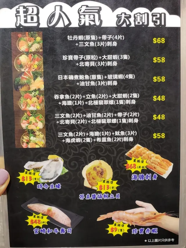 近排肥咗小小,唔想再放題同打邊爐喇兩個人拍拖食飯,揀番間日本料理應該都唔錯,起碼我博大霧食少咗我隔離嗰個都唔覺XDDD但見到張食物劃單紙已經忍唔住手咁揀咗好多款食物喇,因為種類實在太多,價錢亦都非常貼地呀!!!大拖羅刺身*3片($128蚊):男朋友最喜歡食拖羅,見到已經即點唔洗諗,佢話夠哂肥美又有油香咁,我就唔啱口味喇。火炙親子卷($62蚊):呢度啲親子卷份量都算多,一碟有六件,件件都算大舊呀,材料面頭有炙燒過嘅三文魚,另外卷入面有蛋啦青瓜啦同蟹柳,碟上面仲配有惹味千島醬,幾抵食呀。魚生碎蟹籽沙律*二人前($42蚊):食日本嘢最開心就係有開胃沙律食,呢一碟二人份量啱啱好,唔止係蟹籽沙律咁簡單,仲有埋魚生切粒真係正呀~三色刺身*牡丹蝦原隻+帶子四片+三文魚三片*($68蚊):喺油尖旺區食一個三色刺身都好大機會要過百蚊,呢度$68蚊就有交易真係好抵食呀,刺身仲要冇渣流灘,新鮮嘢嚟㗎啵廣島蠔肉鍋($80蚊):我哋最鍾意食辣嘢,所以叫咗地獄湯底,都幾惹味,加廿蚊就可以轉埋稻庭烏冬,爽口啲又比較彈牙,鍋入面除咗肥蠔係主角之外,仲有金菇+日式魚旦+冬菇同小棠菜做配料,又一抵食之菜食完都開始飽飽哋喇......汁燒翠肉瓜串($10蚊):串燒十蚊一串唔叫真係對唔住自己,翠肉瓜係我至愛鹽燒牛舌($20蚊):食肉獸都要叫番串牛肉滿足慾望,呢度款式咁多,下次可以試埋其他吖~…Read More