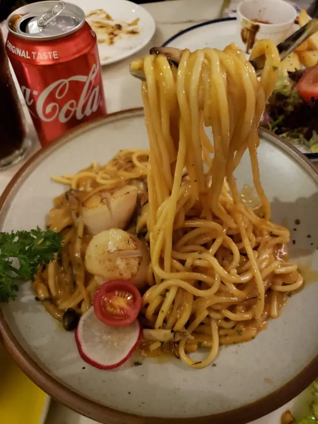 Happy friday又嚟啦~聽日唔洗早起身番工又可以入元朗食好西喇,上次有人試過呢間<Darci by Aldou>話好味道,自己都會再encall,咁我都要嚟試吓。可能我比較小入嚟元朗,嚟到都好有新鮮感,見到餐廳外面掛咗啲燈飾都幾好feel,仲有少少露天座位俾人吹下風或者放下狗咁,都幾寫意同埋餐廳都好多人嚟食,好彩我哋有事先訂位咋^^見到餐牌有啲二人套餐都好吸引同埋價錢都幾抵食,不過另外見到買一送一嘅生蠔更加吸引吖!!!所以叫set怕食唔哂...都係散叫就算喇,咁早嚟食飯都唔係太餓,冇湯飲都OK嘅~餐前小食嚟咗份烤薄餅,另配橄欖油醋可以點嚟食,份薄餅暖笠笠得嚟口感夠軟。法國生蠔($18蚊一隻*買一送一):真係正呀生蠔先十幾蚊一隻,仲有買一送一嘅優惠我哋即時一人叫兩隻吖~生蠔雖然唔係話好大隻,但係勝在夠新鮮。香煎北海道刺身帶子龍蝦汁意粉($158蚊):我好鍾意呢個意粉呀三粒帶子超肥美又彈牙,真係同日式嘅新鮮刺身冇乜分別,啲龍蝦汁好豐盛,夠哂cover成碟意粉,意粉嘅質感亦夠乾爽所以唔會一pat pat咁,另外仲有啲小菇菇做配料,味道豐富。香燒鰻魚玉子燒漢堡配薯條($128蚊):Burger嚟到嘅時候令人嘩然,份量勁大,漢堡包皮有被烘脆,打開仲好清楚見到厚厚嘅玉子同埋長鰻魚一大條,平時佢食漢堡包都食得多,鰻魚漢堡真係比較少見,配菜嘅蕃茄同沙律菜都冇缺少,裡面係日式燒汁,鰻魚燒過之後仍然夠哂juicy入味,整體非常有日式fusion嘅感覺,好有新意薯條亦係新鮮即炒,加埋粗鹽夠哂熱氣又香口。平時都唔係成日嚟元朗,所以今次食到好西心情都變好,餐廳環境裝修得幾靚,坐得又舒服,期待下次再嚟吖~…Read More