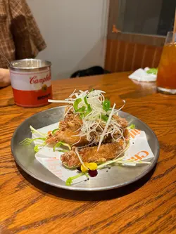 喺荃灣附近同friend想飲下酒食下野,就嚟左呢到食串燒,我哋兩個嗌咗好多!燒雞軟骨同雞腎雞軟骨燒到好香,食落唔會好油,而且脆卜卜好好餸酒!月見免冶雞肉軟骨棒雞肉好嫩滑,連埋啲蛋漿同醬油一齊食味道好豐富,而且最重要係打卡一流!影落超好睇鹽燒牛舌 超大串嘅牛舌,牛肉味超香,食落爽口,加少少鹽已經好好味,我哋兩個食完一串唔夠仲要encore!羊架羶味唔會好重,咬落去啖啖肉之餘會有少少脂肪,所以食落去一啲都唔會韌,而且好貼心咁會用個錫紙包住下便舊骨,拎住食嘅時候都唔會整污糟隻手!吉列炸蠔出邊炸到好脆,入面好多汁水,隻蠔完全冇腥味,配埋啲沙律醬好好食明太子卡邦尼煙肉烏冬嗌咗呢個烏冬諗住攞嚟填飽個肚,但係估唔到超驚喜好好味,篤爆中間隻蛋撈埋個烏冬嘅其他配料同醬,食落去都唔會太鹹太膩,反而覺得好有層次好豐富蘋果酒酒味好足夠,加咗蘋果汁令到飲落去好舒服好順滑,配埋串燒飲一流!焦糖菠蘿食到最後因為已經食咗好多鹹嘢,跟住嗌咗呢個酸酸甜甜嘅焦糖菠蘿,令到成餐冇咁大負擔,啲油膩感即刻冇晒!仲有嗌咗好多其他嘢食不能盡錄,Total兩個人人均300左右,食到超級超級飽,好滿足,我哋兩個都算係食得幾多!…Read More