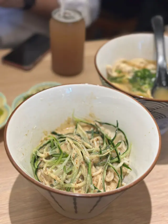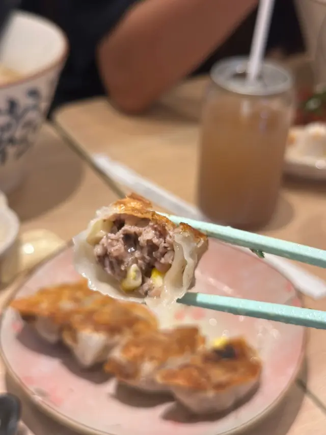 小店裝修有特色,勁多餃子公仔,長期爆滿,超正!「夏日限定」涼拌話梅苦瓜:入口梅香清新,帶微酸,尾段微苦卻清爽解膩。山葵八爪魚:八爪魚爽彈,山葵微嗆開胃。麻藥溏心蛋:蛋黃半熟滑溜,調味入味但不會過鹹。胡麻醬拌拉麵:麻醬香濃,麵條彈牙爽口。花膠雞絲湯麵:雞湯濃郁厚實,花膠大塊啖啖爽滑,雞絲配扁麵更能吸湯。煎大蔥牛肉餃 & 煎黑松露豬肉餃:外皮香脆,餡料新鮮。牛肉帶蔥香,豬肉則混有粟米同黑松露,香氣濃郁,口感突出。大葉雞肉餃 & 鮮蝦帶子餃(湯餃):餃子飽滿多汁,紫蘇葉襯托雞肉帶清新感;鮮蝦帶子鮮味突出,層次明顯。煎朱古力餃:甜點驚喜,外皮脆口,內餡朱古力香濃柔滑,甜而不膩,有點似鼎泰豐朱古力小籠包,但更香脆。自家製凍蔘蘋果雪梨水 & 凍青檸薏米水:甜度適中,果香清爽,解渴。…Read More