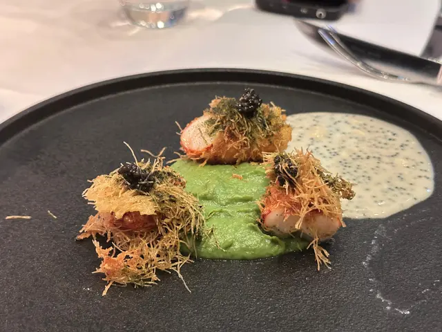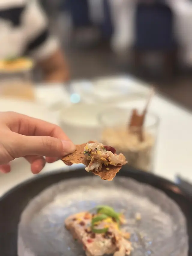 麵包熱辣辣,配上冰凍香濃牛油,正前菜法國藍龍蝦他他配鵝肝脆雞皮,醃製蛋黃及生蠔葉:鵝肝雞皮脆片濃香,像nachos 一樣食,很特別,龍蝦他他彈牙又鮮味,很有層次日本帝王蟹蛋泡沫配24個月法國康帝芝士脆片及海膽:蟹肉鮮甜,水波蛋泡沫creamy,芝士片香脆,海膽又creamy,仲有魚子醬提鮮,口感濃郁豐富,鮮上加鮮荔枝車厘茄凍湯配西班牙紅蝦及酸甜西瓜皮:荔枝味比較濃,紅蝦完全無調味,輕輕一燒,取其鮮,配上淡淡番茄甜酸同滴滴紫蘇油主菜龍蝦配香酥脆皮,魚子醬及清酒忌廉汁:龍蝦結實,脆皮香酥,魚子醬點綴,淡淡清酒汁清香而不膩,配海鮮絕佳熟成本地雞胸肉卷配龍蝦汁脆炸鵝肝及菊芋蓉:香濃龍蝦汁,濃香黑松露醬,濃郁而又外脆內軟炸鵝肝,配上嫩滑雞卷以及清香菊芋蓉,相映成趣甜品腐皮法式千層配豆腐忌廉芝士桂花茶:香脆腐皮,夾住香濃豆腐忌廉芝士,淋上桂花茶糖漿,非常特別,係美麗維港夜色下,為呢一晚劃上完美句號…Read More