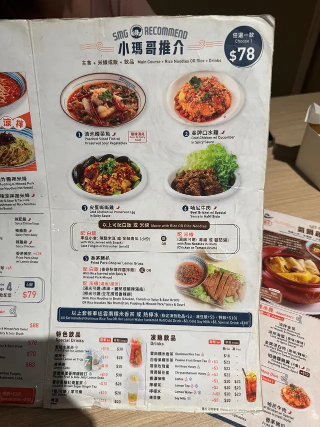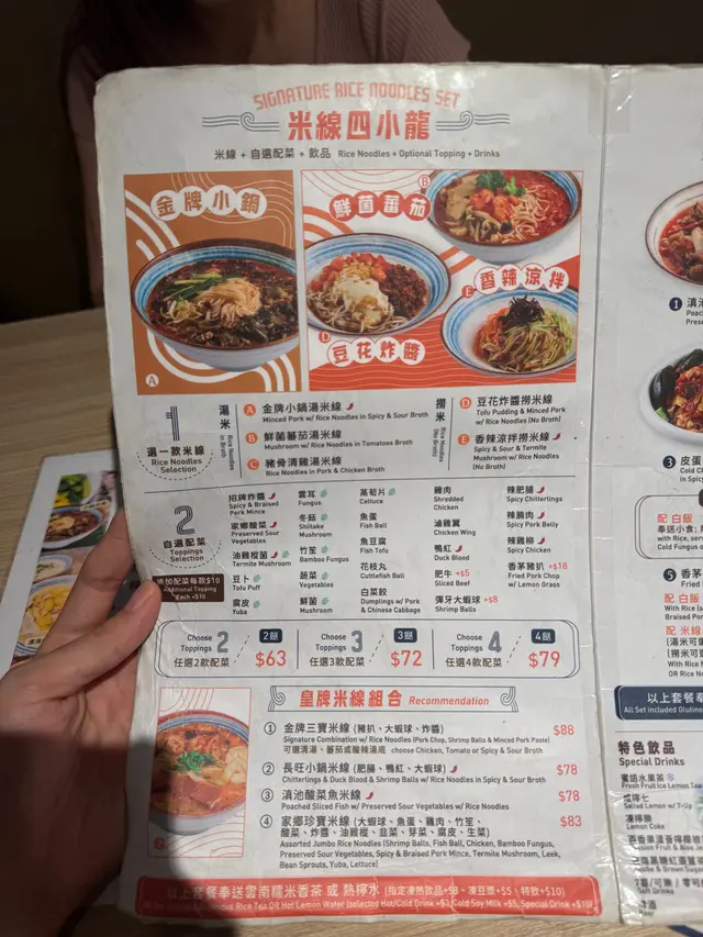 今日嚟到灣仔食小馬哥米線,聽講佢呢度嘅酸辣同埋撈米線都非常唔錯,今日特登嚟試吓,聽老闆講原本係開喺另外一個地方好多年,跟住近年搬咗嚟依度😎金牌小鍋湯米線(冬菇、腐皮、竹笙 , 彈牙大蝦球 )🔥🔥湯底鮮甜微辣,搭配彈牙大蝦球、香菇、腐皮同竹笙,每款配料都吸飽湯汁,味道豐富層次夠。蝦球個個飽滿彈牙,幾彈口,蝦味都不錯冬菇香氣濃郁,腐皮嫩滑,竹笙爽脆,為湯底增添口感變化。✅✅豆花炸醬撈米線(辣雞柳 ,香茅豬扒 ) 💪米線滑順有彈性,炸醬香濃帶點微甜,跟柔滑豆花夠特別,豬扒帶有香茅獨特清香,外層微焦香脆,肉質嫩滑多汁,香氣撲鼻。雞柳炸得金黃酥脆,辣味適中帶花椒麻香,刺激味蕾,吃得過癮。🤩召通醬雞翼 呢度既必點菜,雞翼肉質嫩滑,醬汁鹹甜帶點蒜香,外皮帶脆口感,每口都夠滋味。👌🏻嘶嘶皮蛋 皮蛋入口滑嫩帶鹹香,煙韌口感配餐簡單卻好味。🥒宮廷醬茄子 茄子煮得軟腍吸滿醬汁,宮廷醬鹹香微辣,開胃下飯之選。🫨🫨…Read More