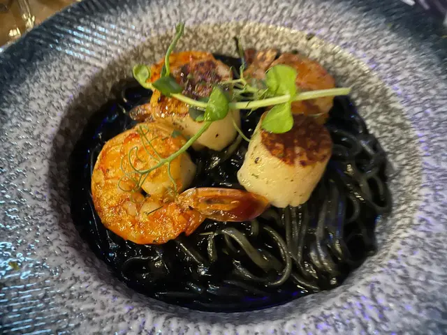 墨魚汁鮮帶子海蝦扁意粉