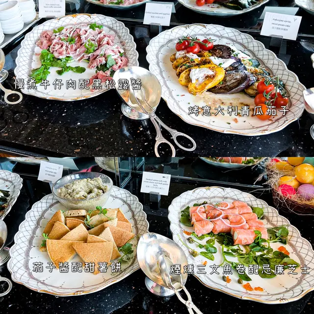 🔥Tiffin茶園Brunch自助早午餐🔥供應時間:中午12點至下午2點半🌟凍海鮮🌟凍蝦:清甜但未到鮮甜,而且部分有少少軟爛。長腳蟹:肉夠厚身而且海水味適中,鮮味也充足。生蠔:一共有兩款,都是法國蠔,雖然體型比較小,但一點都不腥,左邊海水味重,右邊就鮮味突出一點。翡翠螺:不過不失⠀🌟冷盤🌟頭盤:自家製肝醬、煙燻三文魚卷配忌廉芝士、茄子醬配甜薯餅、烤意大利青瓜茄子、慢煮牛仔肉配黑松露醬,都很好吃!⠀鹹火腿:西班牙火腿、莎樂美腸、豬肉麵包酥、香草豬首批(沒打錯),還有甜甜的蜜瓜可以拿。⠀沙律:烤粟米辣椒沙律、豌豆茴香薄荷葉沙律、甘荀香橙提子乾沙律、大麥椰子藜麥沙律、番茄水牛芝士配烤時令蔬菜,另外還有幾款沙律菜和小番茄可以自由配搭。⠀芝士:Brie、Blue Danish、Tomme de Savoie、Mimolette⠀🌟熱食🌟鵝肝:大件厚身,煎得微焦剛剛好,口感細滑香醇,連配在一起的麵包也很好吃🥰⠀煙肉焗蠔:尺寸比生蠔大,比較飽滿,味道也不錯⠀燉牛仔肉:肉質很軟,一切就分開,而且非常入味,帶著紅酒味。⠀燉牛尾:味道偏濃,煮得比燉牛肉更軟,但也比較散開,所以兩者的口感不一樣。⠀香茜煎鱸魚:香茜味突出但不搶戲,鱸魚的肉質略嫌有一點點的老,但可能因為放在鍋子裡悶著以致過熟,建議可以選比較厚一點的來吃,就能吃到中間軟嫩的部分。⠀烤肉眼牛排:色澤和牛味都滿分,但肉質一般,纖維比較多,而且越厚越韌,記得請師傅儘量薄切。⠀烤羊架:肉質算軟稔,調味也不會過濃,但羊羶味不重,再回頭吃的意欲不大。⠀白酒煮青口:稍微有點腥,質感也偏水,而且感覺只有胡椒的調味,吃了一隻就放棄了。⠀波蘭黑麥湯:包含豬肉腸、雜草,鹹肉,帶著淡淡的菇味,雖說是復活節才推出的,但據說平常都是龍蝦湯,就突然覺得有點可惜了。⠀另外還有烤羊肉腸、番茄煙肉洋蔥焗薯、番茄醬魷魚燉菜、蠶豆蘑菇糙米飯、兒童區域的炸雞手指條、扒芝士三文治、番茄醬肉丸、奶油醬義大利麵、芝士露旬配松露水煮蛋等選擇。⠀🌟甜品🌟復活節十字包、復活節乾果蛋糕、彩虹蛋糕、蜜桃香檳味啫喱、朱古力蛋糕、芒果蛋白餅柚子忌廉、椰子芒果奶凍、紅絲絨蛋糕、焗開心果紅莓撻、法式可麗露、雜錦朱古力、馬卡龍、橙酒煎餅。⠀自家製雪糕:士多啤梨芝士餅、港式奶茶、香蕉熱情果,杏脯雪芭、荔枝紫蘇雪芭、芒果糯米飯、大溪地雲呢拿(不是只有奶味很不錯)、法國64%朱古力(香濃且有巧克力碎)。⠀水果:橙、火龍果⠀🦞另外每人有一款蛋類料理(蘑菇焗蛋OR三文魚炒蛋OR火腿班尼迪蛋),以及一隻波士頓龍蝦自選烹調法(凍食OR香草牛油焗OR芝士焗),蛋類的除了焗蛋都可以一試,而龍蝦兩種焗法都不錯,但肉質較韌很難咬開,唯一細心的是會將鉗除殼放在裡面。⠀✏️全部都是歐陸食物,款式貴精不貴多,大部分質素也屬上等,不過如果想要更多環球美食的朋友,就建議去咖啡廳了。…Read More