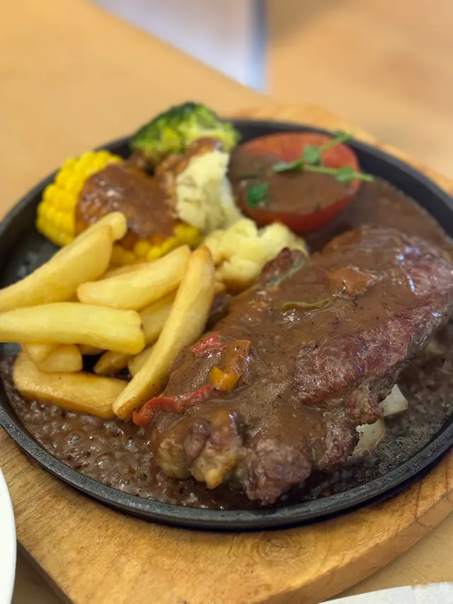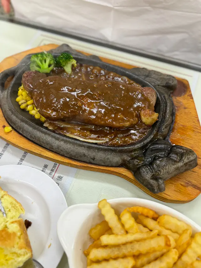 經過K11見到樓下開咗間祥仔,一直都知大廚張錦祥嘅大名,所以就行咗入嚟試下。澳洲西冷牛扒🥩 $198嗌咗黑椒汁、七分熟嘅西冷,上嘅時候仲熱辣辣沸騰緊,配菜就有粟米🌽薯條🍟西蘭花🥦番茄🍅,牛扒煎的啱啱好,好多肉汁脆脆豬扒飯🍚 $138勁厚一塊吉列豬扒,炸的好有鍋氣。配菜望落去都好有食慾,煎過嘅菠蘿圈菠蘿,鮮茄醬。為之瘋狂菠蘿冰🍍跟餐$28有好多菠蘿粒,蘇打水溝上酸酸甜甜的菠蘿汁,解暑又解渴😋黑牛🥤跟餐$14最經典嘅黑牛,黑朱古力雪糕再加上冰可樂🧊冰冰涼涼非常解暑staff服務態度好,上菜都好快,😋果然係大廚推薦👨🏻‍🍳…Read More