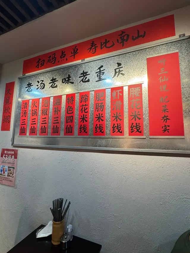 本人是米線愛好者,見到太子開咗間曾三仙米線,係大陸連鎖店,分店超過1000間,而香港係第一間,點都要過嚟吃下先。🌶️火鍋肥腸米線用咗牛油火鍋湯底做米線嘅湯底,配料有花生米、木耳絲、韭菜、番茄,主角肥腸都處理的好乾淨,一啲都唔油。用一個小鍋盛住上,真係好似食緊一人鍋嘅麻辣火鍋,好正😋🍲四仙米線呢個米線配料好豐富,除咗有木耳絲、韭菜,仲有鵪鶉蛋、蟲草花、豬潤、午餐肉等,簡直就係雜錦米線😆湯底少少酸辣,好適合咩都想食嘅朋友。🥔鍋巴土豆小食好推薦呢個!!小塊嘅土豆炸到外脆裡嫩,重點係調味深得我心,甜辣口味,食到停唔到口😋🥙牛肉餡餅望落去以為唔大,但份量十足,入邊嘅牛肉都唔少,基本上每一啖都可以咬到肉,超滿足😌🫓油條糍粑香香脆脆的小油條裹住煙韌嘅糍粑,再粘香甜嘅芝麻糖,中式飯後甜點😋呢個組合意外嘅夾,推薦俾大家🥥馬蹄椰子水店家還有心將馬蹄切成一粒粒,再整到好似爆珠咁,咬落去會有爆漿嘅感覺。椰子水飲的出係真材實料椰子整嘅,非常解渴解辣。🍐小吊梨湯有少少似雪梨茶,但比雪梨茶重要清新,而且不會太甜,飲上嚟冇負擔。…Read More