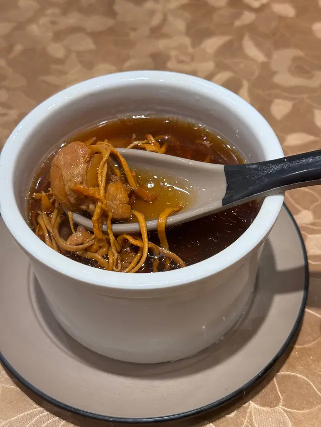 晚上想飲茶🫖就同阿媽嚟咗呢間試試,留意到係餐廳是自家製品牌,點心現場即點即做,覺得出品應該唔錯。另外餐廳個師傅係日本東京富麗華多年,係香港都係多間米芝蓮酒店及大型連鎖酒樓集團做主管,點樣都要嚟食下打卡。🥣蟲草花螺片燉雞湯 $48湯水清甜,用料都好豐富,隨便一匙羹都係料,而且調味剛剛好,不會覺得太鹹,好讚😋🥣川弓白芷天麻燉斑骨湯 $58平時好少係屋企煲補湯,天麻呢料嘅湯都少飲,難得見到餐湯有提供,肯定要試試。藥材煲的好出味,用料好足,可以吃到好多肉骨,👍🏻鮑魚北菇燒賣皇 $42飲茶點可以少咗燒賣,而且有鮑魚啊😍鮑魚好飽滿,燒賣幾乎全部都係蝦肉,好鮮美黑椒醬皇金錢肚 $32金錢肚都係飲茶必嗌,處理的好乾淨而且醬汁好入味,推薦🦑椒鹽魷魚鬚 $138新鮮炸起,非常酥脆,而且表面嘅酥皮不會太厚,魷魚都食的出係新鮮嘅,好惹味🍲沙茶安格斯牛肉粉絲煲 $138新鮮出爐,端上桌嘅時候仲係熱辣辣冒緊蒸汽。牛肉好入味,而且一啲都唔柴。粉絲舖係底,仲有金針菇等配料,可以撈埋醬汁一齊食😋…Read More