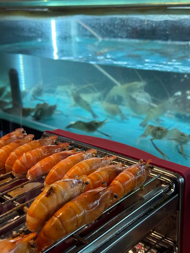😆同朋友仔又約嚟食燒蝦啦。店員服務好熱情,見到我哋拎咗茄子🍆會主動幫我哋剪開,仲教我哋點樣調燒茄子嘅醬汁。座位全部係安排水箱隔鄰,方便抓蝦即燒🔥主打自助海鮮燒烤,另外都有唔少肉類同蔬菜提供,飲品種類都好多,食完仲可以拎埋雪糕食,🤣兩個女仔全程食唔停。海鮮有活蝦🦐,自助食材區就有扇貝、海螺🐚、鮑魚、花甲王,全部都好新鮮,推薦一定要食扇貝,有提供粉絲、蒜蓉、辣椒仔、蔥花俾客DIY調味,夠嗮細心🥰海鮮真係好新鮮,一路有師傅補充新鮮食材對面嘅雪櫃有牛仔骨、雞翼、漢堡扒、牛肉同丸子;隔鄰就有茄子、菠蘿、小甜薯。Staff會幫手清理檯面雜物,烤之前都會主動講解唔同嘅夾分別用嚟夾咩食材🥰🥰成個場面積好大,平日都好多人食,非常適合聚會,而且冷氣夠大,一啲都唔熱…Read More