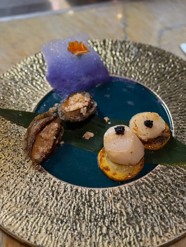 低調門面嘅鐵板燒店,位置不多,平日都唔少人,記得提前訂位。有好多款自選套餐,今次同frd都揀咗入門級套餐💰588 五道菜🥗招牌沙拉煙三文魚配上黑魚籽,再點圖案黑醋,非常開胃🌊鐵板海鮮兩品3M帶子加上魚子醬,再黃瓜墊底,口感同味道好豐富,帶子非常大粒😋秘制蒜蓉鮑魚真係好好食,鮑魚處理的啱啱好,火候控制的好👌擺盤用咗蝶豆花海鹽泡泡,做為分子料理嘅一種,都好新穎🐔日本秋田雞排沾菠蘿辣菜汁,酸酸甜甜解咗雞排嘅油膩,同時間都激發咗雞排嘅肉香,順便讚一下雞肉好嫩滑👍🏻🍚海鮮炒飯主廚好好人幫我哋升級黑松露海鮮炒飯,好像鍋氣,仲有好大一隻蝦🦐🍨甜品日本豆腐淡淡哋嘅豆腐味,又唔會太甜,中和咗鐵板燒嘅油膩,點綴用咗比利時玫瑰,可以哋的錯店家對每一個菜品都好用心…Read More