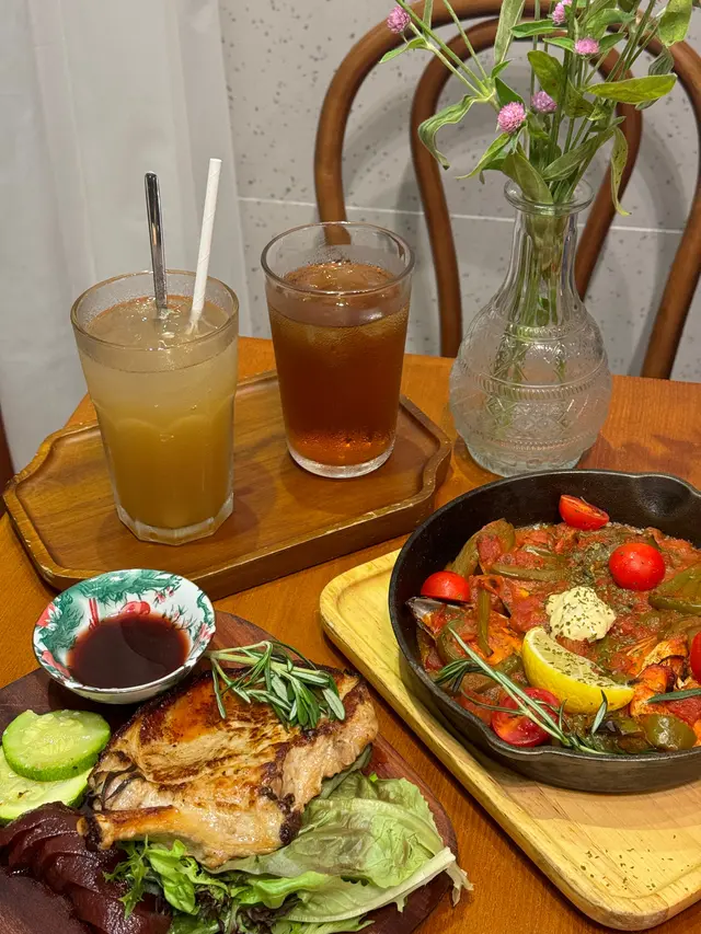 🍛地中海海鮮燉飯有青口,大蝦,番茄仔,青椒甜椒醬料秘制調配,米飯軟糯,香甜中帶酸的味道😋🥩斧頭豬鞍紅酒肉扒,入口細嫩,有淡淡酒香,搭配特製的川貝肉桂燉雪梨醬,非常解膩,是清甜嘅味道,這個搭配意外的好食🍹蝶豆花熱情果蘇打蝶豆花的藍紫色特別好看,後續加入檸檬汁攪拌又會變成第二種顏色,酸酸甜甜的蘇打水,非常解渴店鋪裝修的很有文藝氣息,無論是晚上下班來吃個dinner,還是週末過嚟chill一下,都係一個放鬆嘅好地方…Read More