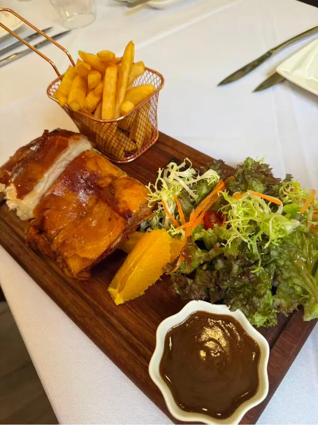 葡頌苑係澳門氹仔一間好有特色嘅葡國菜餐廳,裝潢充滿歐陸風情,氣氛悠閒又浪漫,啱晒情侶拍拖或者一家人聚餐🤓🌸葡式烤乳豬,外皮香脆,肉質嫩滑,配埋香草同蒜蓉,真係一試難忘😋仲有薯條係粗薯條,炸得唔會太乾🥳🌸葡國雞,用椰汁,薯仔,洋蔥慢煮,味道濃郁又有層次,肉質香滑係葡國菜入面嘅經典菜式😍值得一試😌🌸炙烤馬介休,鹹鱈魚經炙烤後香氣四溢,配橄欖油、蒜蓉同洋蔥,口感豐富,又唔會多骨😋味道鮮味🥰…Read More