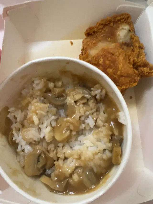 今天体验极差。先看这米饭,入口干硬,颗粒感粗糙,完全没有米饭该有的软糯香甜,像是煮了很久又放凉的剩饭,口感大打折扣。搭配的蘑菇酱汁更是灾难,味道寡淡,蘑菇的香气几乎没有,酱汁质地也不均匀,有的地方稀如水,有的地方又结块,黏糊糊地裹在米饭上,毫无美味可言。再说说这炸鸡,外表的炸衣看似酥脆,实则油腻得过分,一咬下去,油脂便渗出来,腻得让人难受。里面的鸡肉不仅没什么味道,还柴得厉害,干巴巴的,完全没有鲜嫩多汁的口感。從食材品质、烹饪口感和调味上都存在严重问题,从米饭到配菜再到主菜,没有一样能让人满意,实在不推荐购买。…Read More