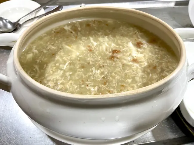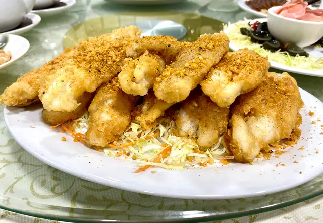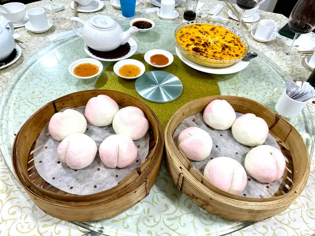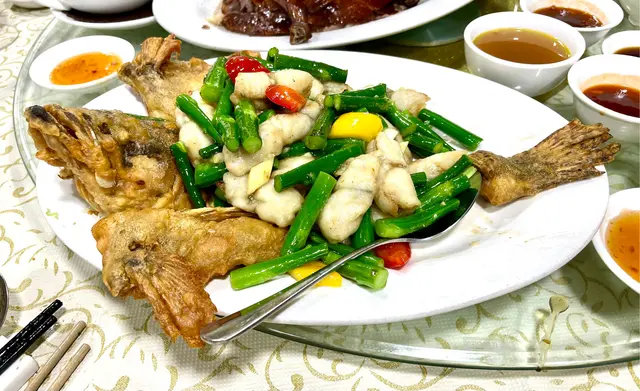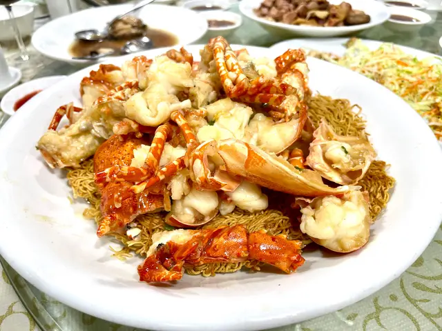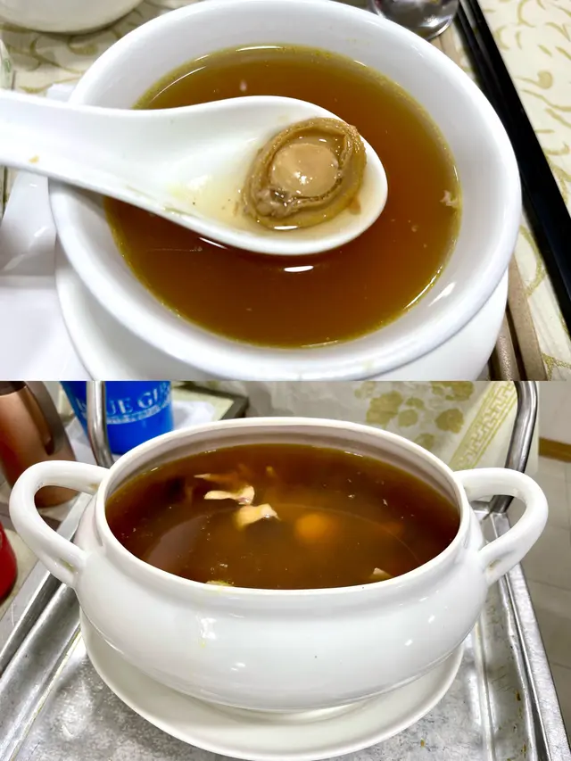 非常豐盛的一餐! 鷓鴣燕窩羮令我實現了燕窩自由及豪氣!鮑魚燒鵝最驚喜的是鮑魚! 有專業買手用秘制古方醬料煨足一個晚上、釀入稍肥鵝中燒制,燒鵝皮脆肉嫩、鮑魚超級入味、醬頰留香!蝦多士是原隻蝦上不肥不膩,蟹肉炒鮮奶用的是新鮮海蟹拆肉炒能看見一梭一梭有鹹鮮的蟹肉超級甜美;避風塘海中蝦帶辣惹味;龍鬚桂花魚的魚肉幼嫩配上木耳絲口感一流,牛筋腩撈粗的麵爽口彈牙,加上自家製的辣椒油或本地特色辣椒醬都是我們的「飛佛」;甜品是古法馬拉糕夠鬆化又不甜!老牌茶居的確每次都令我們吃得有驚喜、滿腹之餘又開心