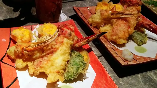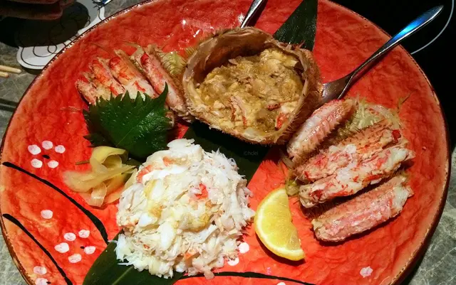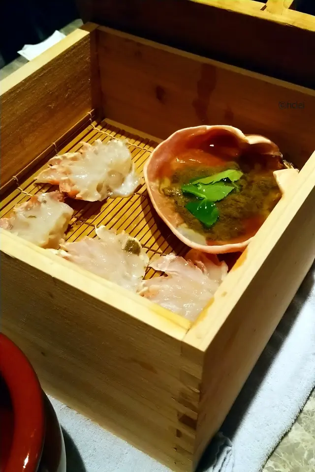 點了有齊松葉蟹、鱈場蟹、毛蟹三種的套餐,共 11 道菜,每位$1680︰1. 海膽蟹肉粟米凍湯2. 松葉蟹腳刺身3. 蒸松葉蟹及蟹膏4. 燒鱈場蟹腳 5. 松葉蟹鉗及鱈場蟹腳天婦羅6. 凍毛蟹7. 鱈場蟹及松葉蟹火鍋8. 雜菜盤火鍋9. 蟹肉餃子10. 雜燴粥11. 甜品松葉蟹腳刺身淡雅新鮮,燒鱈場蟹腳鮮美肉厚,讓人大滿足。松葉蟹鉗及鱈場蟹腳天婦羅亦非常驚喜,被香脆天婦羅麵衣包裹的蟹肉更顯 JUICY 多汁,沾點抹茶鹽,就更惹味。最佳配角有天婦羅流心蛋,還有天婦羅紫蘇葉夾蟹肉,當中的技巧和心思實在令人讚不絕口。當大家開始覺得拆蟹拆累了,侍應就奉上已經拆好肉的凍毛蟹,啖啖肉,又不用弄髒雙手,很能體貼儀態萬千的女士呢!凍毛蟹蟹膏非常濃郁,齒頰留香,令人回味無窮。…查看更多