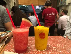 今日落🐶💩⛈,諗住少啲人排隊,點知都等咗成個鐘,真係痴線!不過咁,嘢食都真係好好味,等係值得嘅,之前啲人同我講話啱啱開嗰陣要等成三粒鐘,而家好啲嘅......就嚟到我哋嘅時候,店員叫我哋整返杯嘢飲先,我哋就嗌咗 fresh juice,Watermelon 同 Mango Passion Fruit,堅正!好fresh,好新鮮!送啲辣嘢,簡直一流!先嚟碟 Pad Thai,用料好新鮮,係我食過之中好唔錯嘅 Pad Thai!D蝦係 fresh 嘅!係啲葱大條啲,唔知點食。Crab Meat 煎蛋餅,有啲乾,不過點咗個醬就相當好味!Boat Noodles 正!D炸豬皮好脆,同唔會有油益味,粉都唔錯!戲肉嚟啦!全晚最欣賞嘅和牛闊粉!肉質好靚,好肥美,超好食!用闊粉配撘又夠晒正宗,真係好好味!牛肉仲要做到七分熟,真係冇得頂!可惜嘅係,我哋飽到食唔到甜品!!好灰,因為聽講都好好味,唯有下次再嚟品嚐啦!…Read More