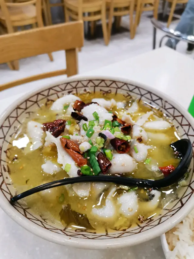 二人同行,午市堂食,點了酸菜魚和雞煲套餐。酸菜魚份量頗多,魚片嫩滑,有骨的。配菜有娃娃菜、芽菜、酸菜和粉絲。我們叫了小辣,但吃下去沒有辣味,也不夠酸,不過真的很多魚肉。雞煲的份量有點少,同樣叫了少辣,但辣味不明顯。配菜有青椒、洋蔥和木耳,鹹了一點點,但之後再看有點可怕...底下全是油!湯杓裏的不是汁,是油!!!吃完後忘記拍下剩下的油,但真的多得誇張,是大約一碗的油量。懷疑廚房把油和水混淆了?還是正宗的四川菜是這樣的?這些油撈飯是好吃,但未免太多了吧?